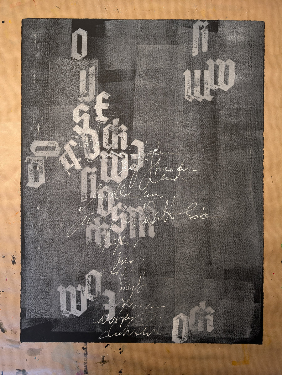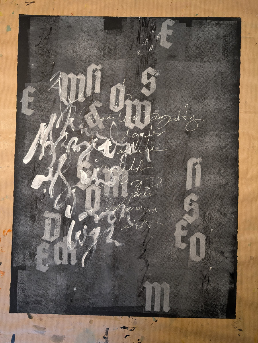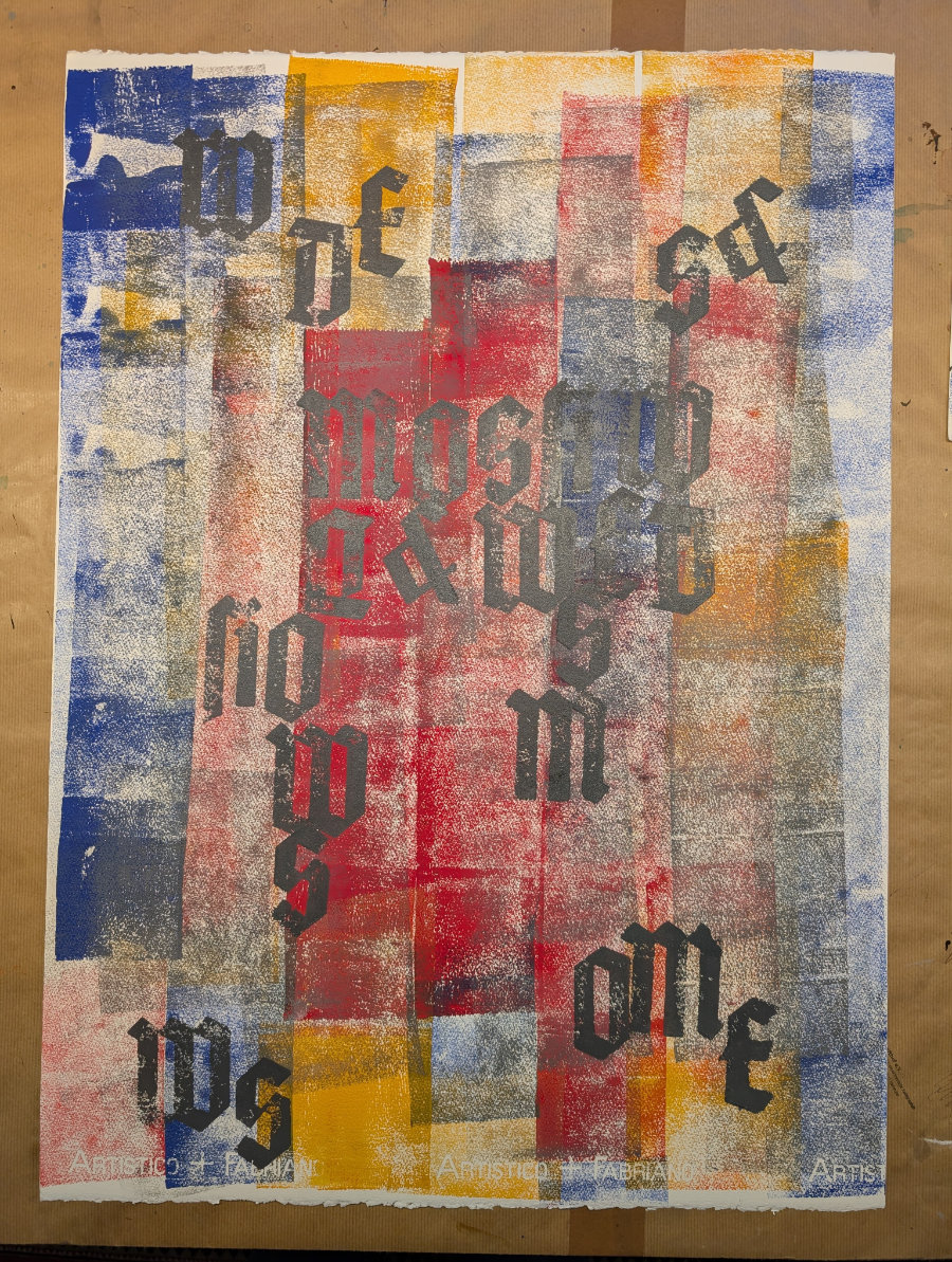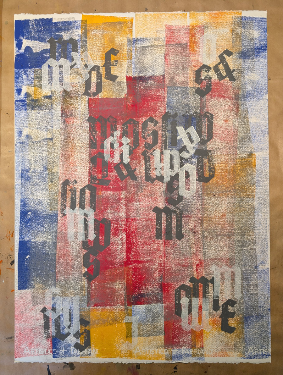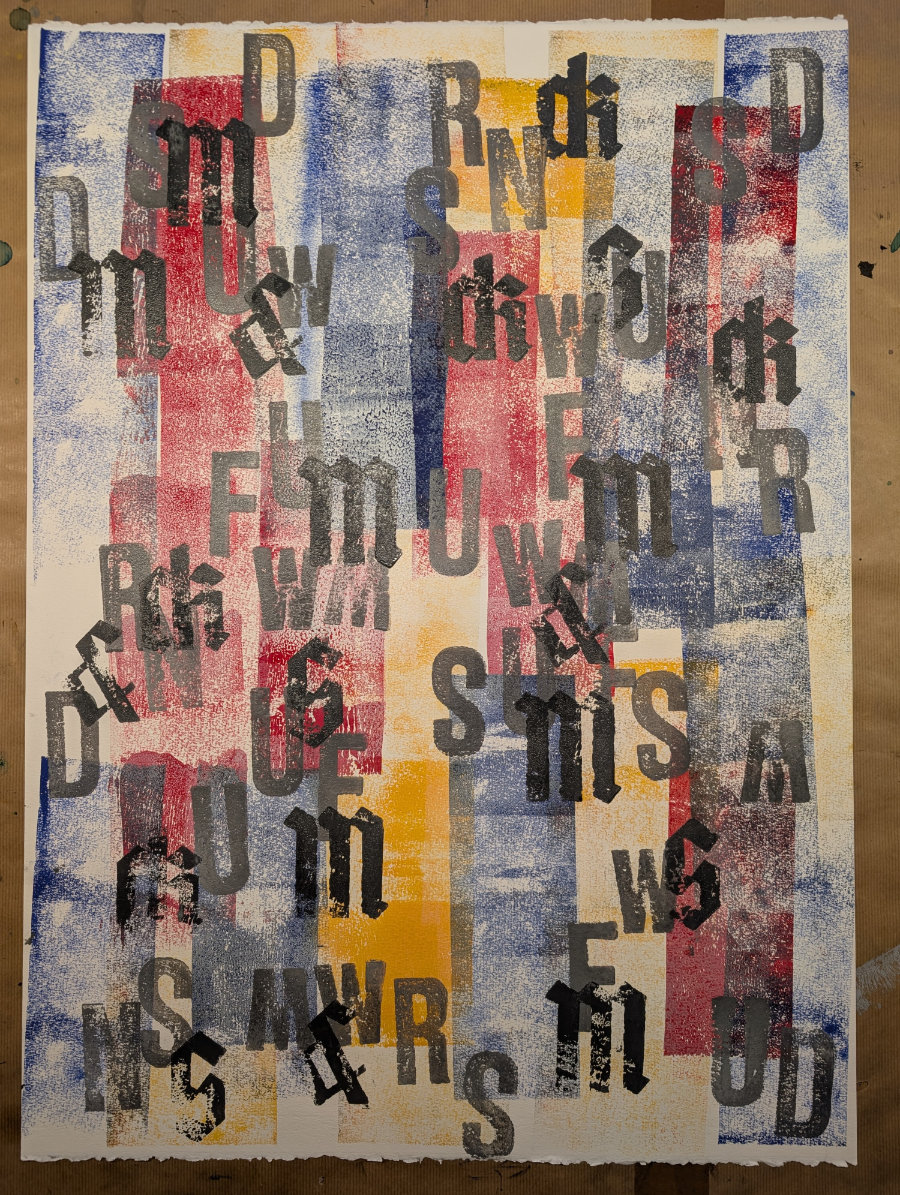 Mit der Hand gedruckt geldruck Gel-Platte, Acrylfarbe, Aquarellpapier mehrschichtig von bildvorlagen oder freier zeichnung Gel-Platte, Acrylfarbe, Aquarellpapier motiv und zweischichtig Gel-Platte, Acrylfarbe, Aquarellpapier gedruckt - geteilt - collagiert Japanpapier, Buchstabendruck, geteilte zusammengefügt gedruckt - geteilt - collagiert - überschrieben Japanpapier, Buchstabendruck, geteilte zusammengefügt, mit Tusche überschrieben gedruckt Plakatbuchstaben, von Hand gedruckt, Aquarellpapier gedruckt - geteilt - collagiert - überschrieben Japanpapier, Buchstabendruck, geteilte zusammengefügt, mit Tusche überschrieben