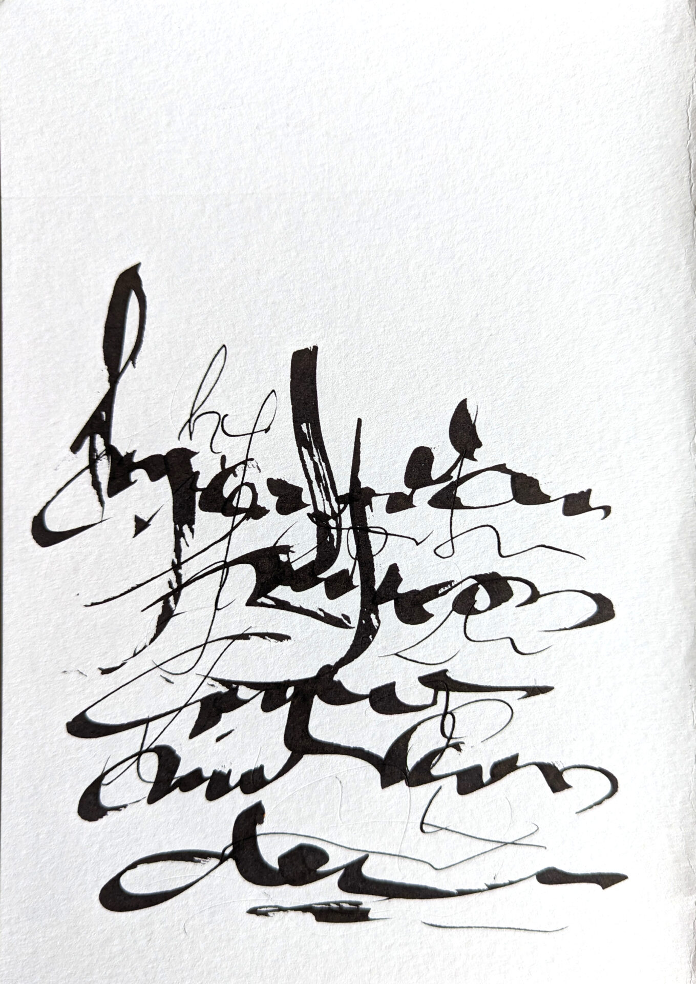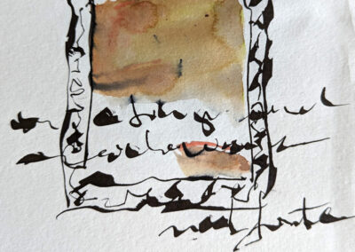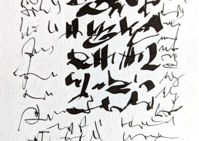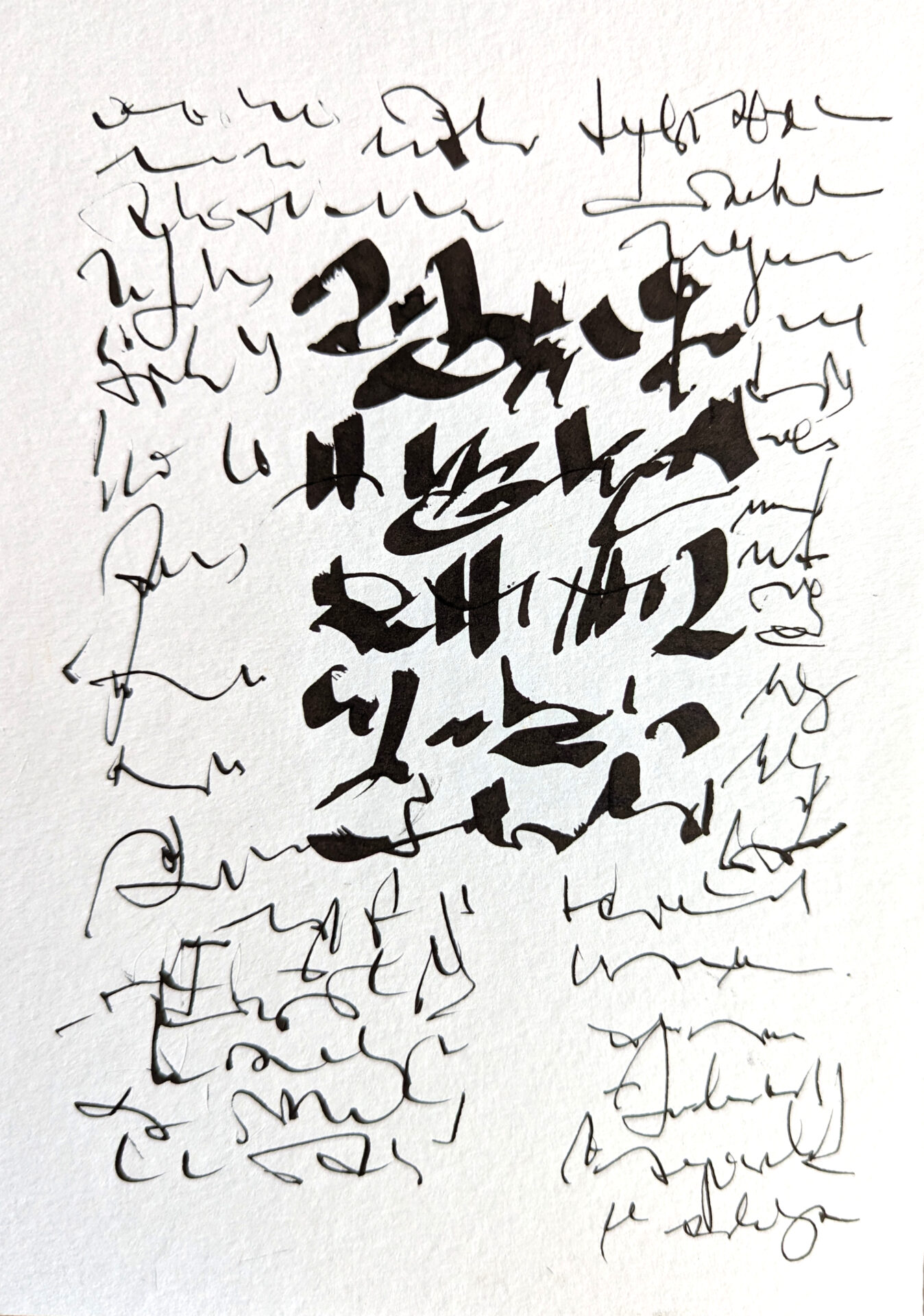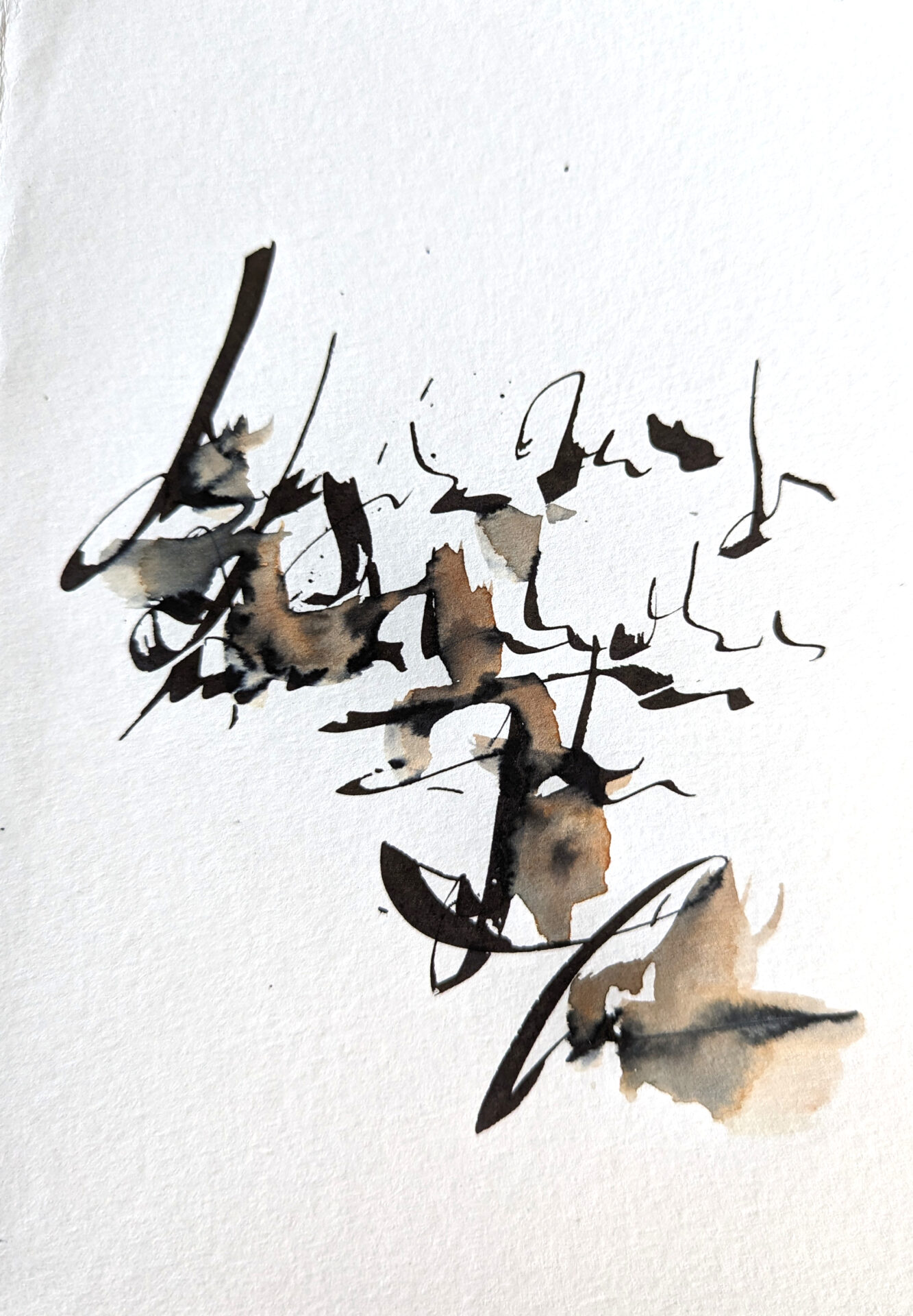 Mit der Hand geschrieben Asemic Writing Tusche, Feder, Aquarellpapier Asemic Writing Tusche, Feder, Aquarellfarbe, Aquarellpapier
