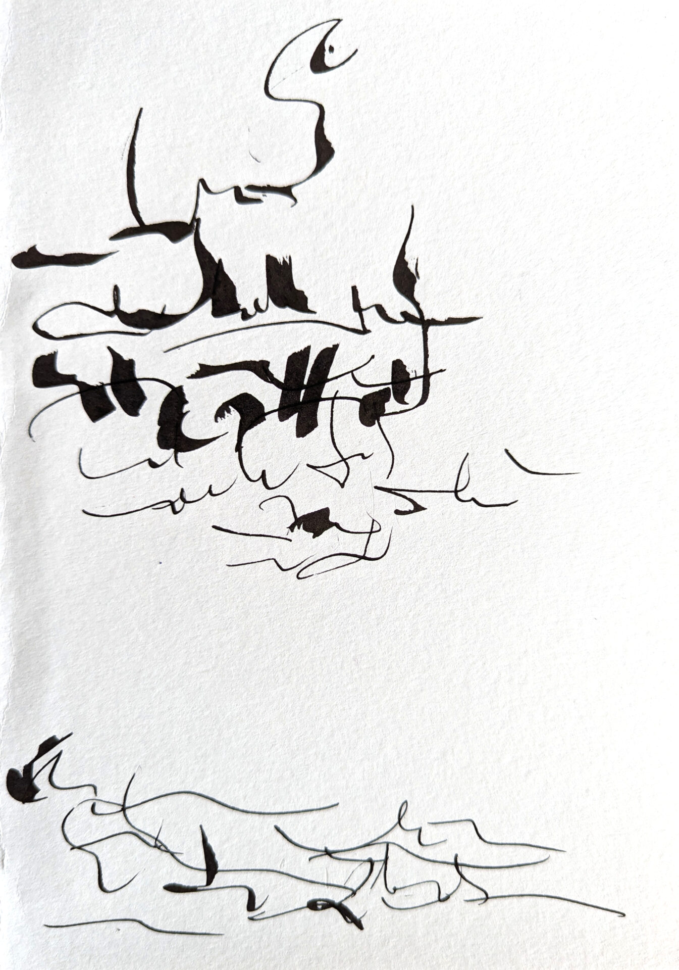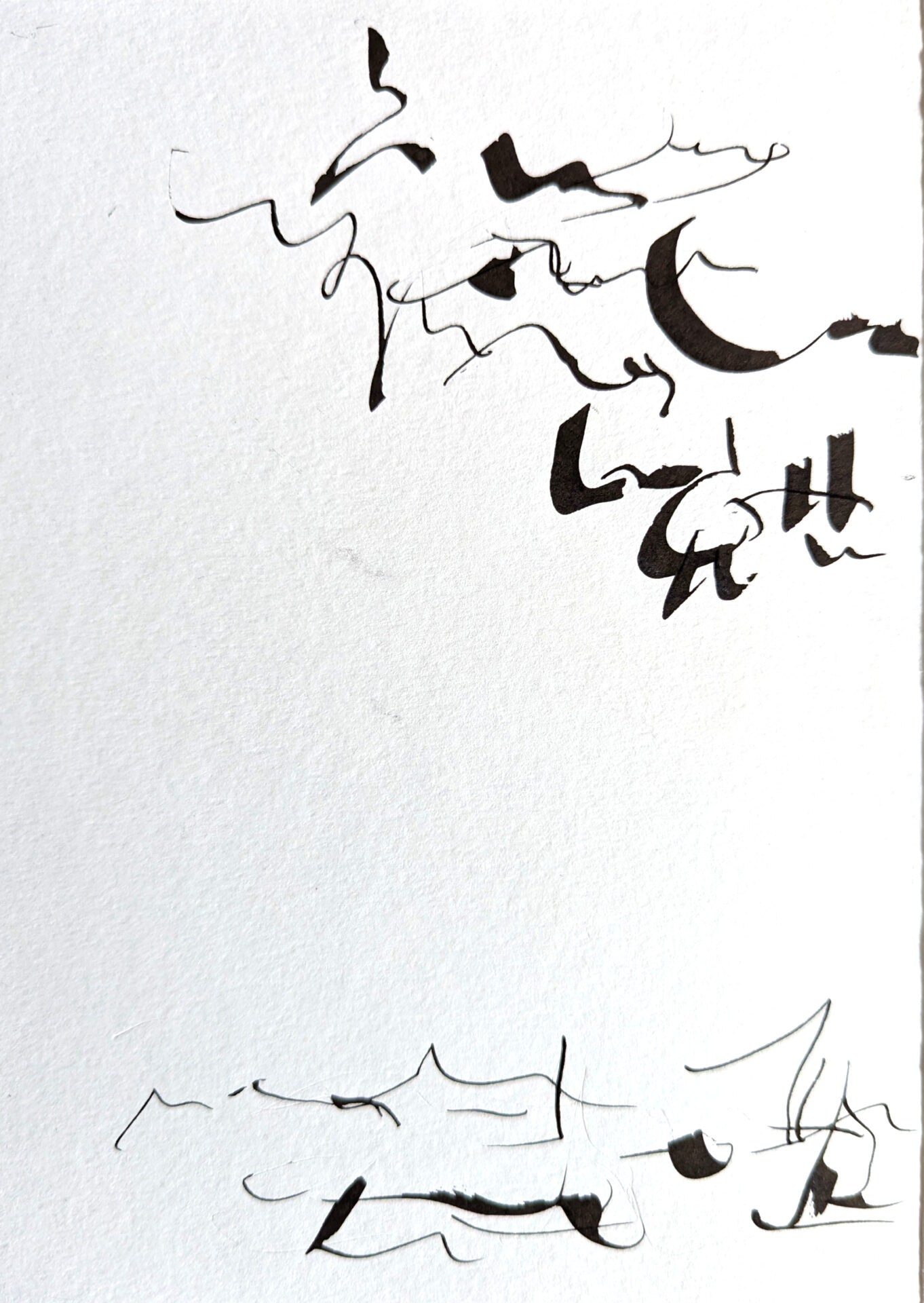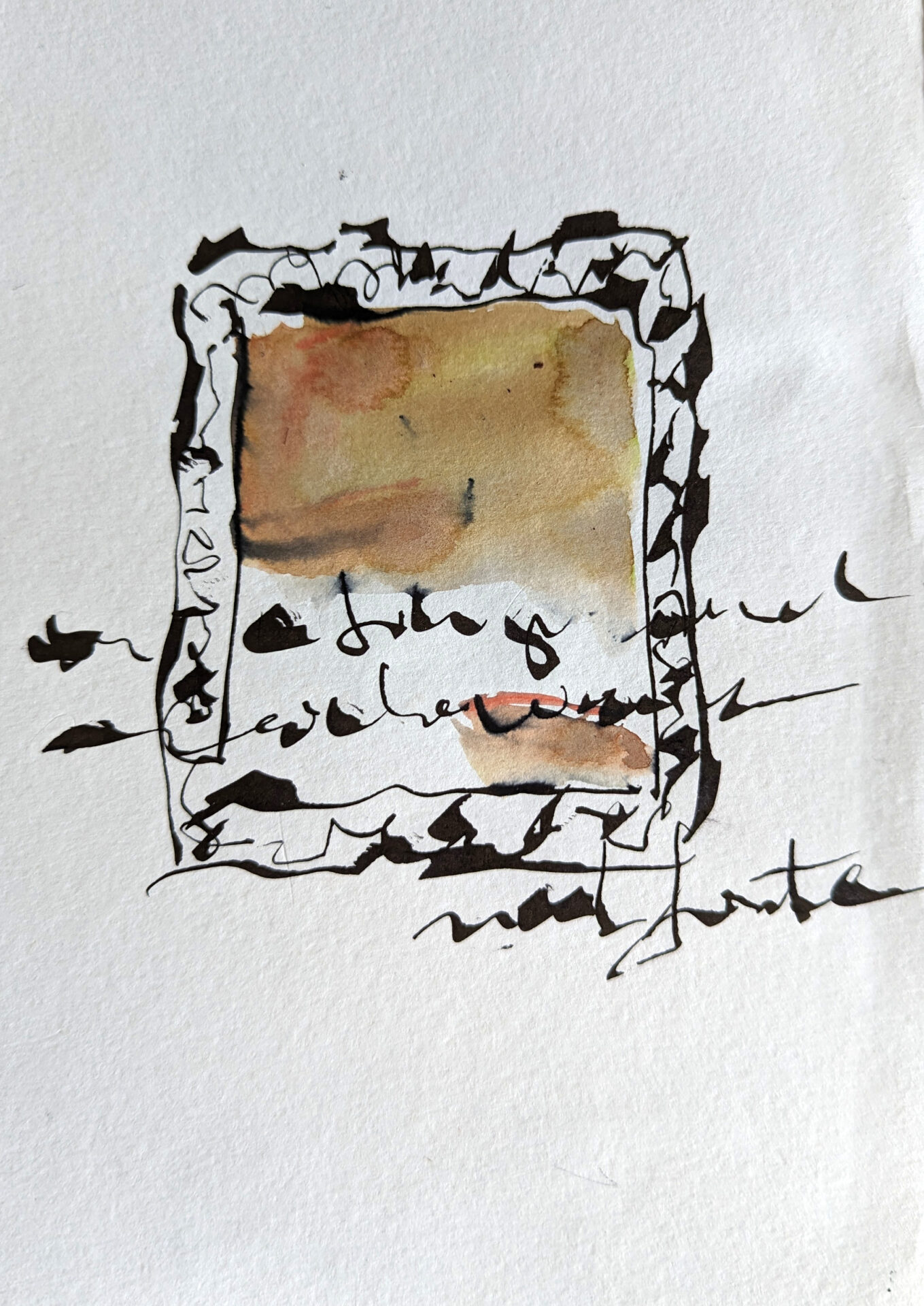 Mit der Hand geschrieben Asemic Writing Tusche, Feder, Aquarellpapier Asemic Writing Tusche, Feder, Aquarellfarbe, Aquarellpapier